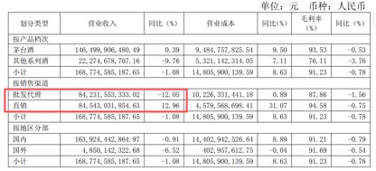 这种担忧已经在财报中得以显现。在年报中,批发代理渠道的营业收入为842.32亿元,同比下降12.05%;而直销实现营收845.43亿元,同比增长12.96%。